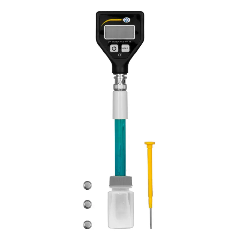 PCE-PH 16 pH Metre, çeşitli sıvılarda pH değerini belirlemek için kullanılan ve kullanımı kolay bir cihazdır. BNC bağlantısı yardımı ile çeşitli pH elektrodu cihaza bağlanabilir. ± 0.1 pH hassasiyeti ve 0.01 pH çözünürlüğü sayesinde cihaz ile hassasiyeti yüksek ölçümler gerçekleştirilebilir.