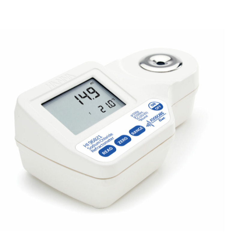 Gıda endüstrisinde kullanım için tasarlanan HI96821 Gıdada Sodyum Klorür Ölçümü için Dijital Refraktometre, sodyum ölçümü için taşınabilir, hafif ve kullanışlı bir seçenektir. Numuneler, basit kullanıcı kalibrasyonundan sonra ölçülür ve saniyeler içinde okumanız yapılır.