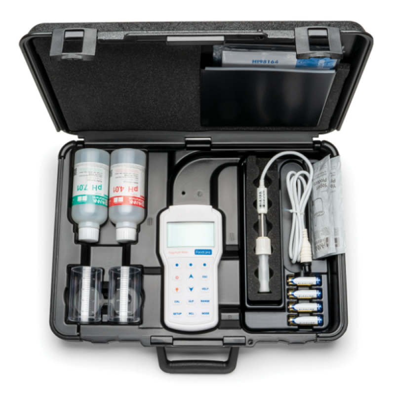- Sipariş Bilgileri HI98164, FC2133 PVDF gövde pH elektrodu, HI7004M pH 4.01 tampon solüsyonu (230 mL), HI7007M pH 7.01 tampon solüsyonu (230 mL), yoğurt kalıntıları için HI700643 elektrot temizleme ve dezenfeksiyon solüsyonu (2), 100 mL plastik beher (2 ), 1,5V AA piller (4), HI92000 PC yazılımı, HI920015 mikro USB kablosu, hızlı başlangıç kılavuzlu kullanım kılavuzu, cihaz kalite sertifikası ve HI720161 sert taşıma çantası.