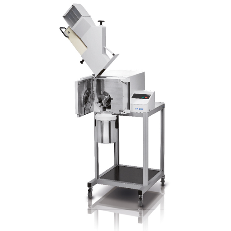 SM 200 boyut küçültmeyi, kesme kuvvetleri uygulayarak gerçekleştirir. Örnek, rotor, bıçaklar ve sabit çift etkili kesici çubuklar arasında ufalanır.6-disk rotor, spiral düzenlenmiş olup, sert metal plakalar sırayla keserek çalışır. Paralel rotor, güçlü bir kesme işlemi ile küçültmeyi yapar. Numune, öğütme haznesinden hızlı bir şekilde geçer ve eleğe ulaşır.1.500 devir/dakika hıza sahip rotor, hızlı ve kolay bir öğütme gerçekleştirir. Siklon-emme-kombinasyonu isteğe bağlı olup, örnekleri soğutma etkisi vardır, aynı zamanda malzemenin öğütme haznesinden dışarı atılmasını sağlar.