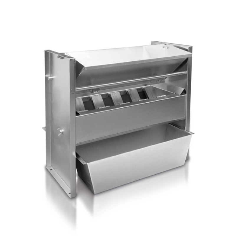 RT 100, kapalı çıkışı olan bir besleme hunisi ile donatılmıştır. Böylece, 30 litreye kadar numune malzemesi, besleme gözünün tüm genişliği boyunca eşit olarak yayılabilir. Çıkış, bir kol hareket ettirilerek manuel olarak açılır ve numune bölünür. Bölme kafasının yuvaları maksimum 108 mm genişliğe ayarlanabilir.