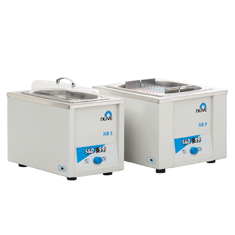 Nüve NB Serisi Sirkülasyonsuz Su Banyoları, ergonomik dış tasarımları, programlanabilir N-Prime™ mikroişlemcili kontrol sistemleri ve üç katmanlı izolasyonları ile mükemmel sıcaklık hassasiyeti ve dağılımı sunmaktadır. Cihazlarda zaman ve sıcaklık ayarlarının izlenebilmesi için dijital gösterge bulunmaktadır.