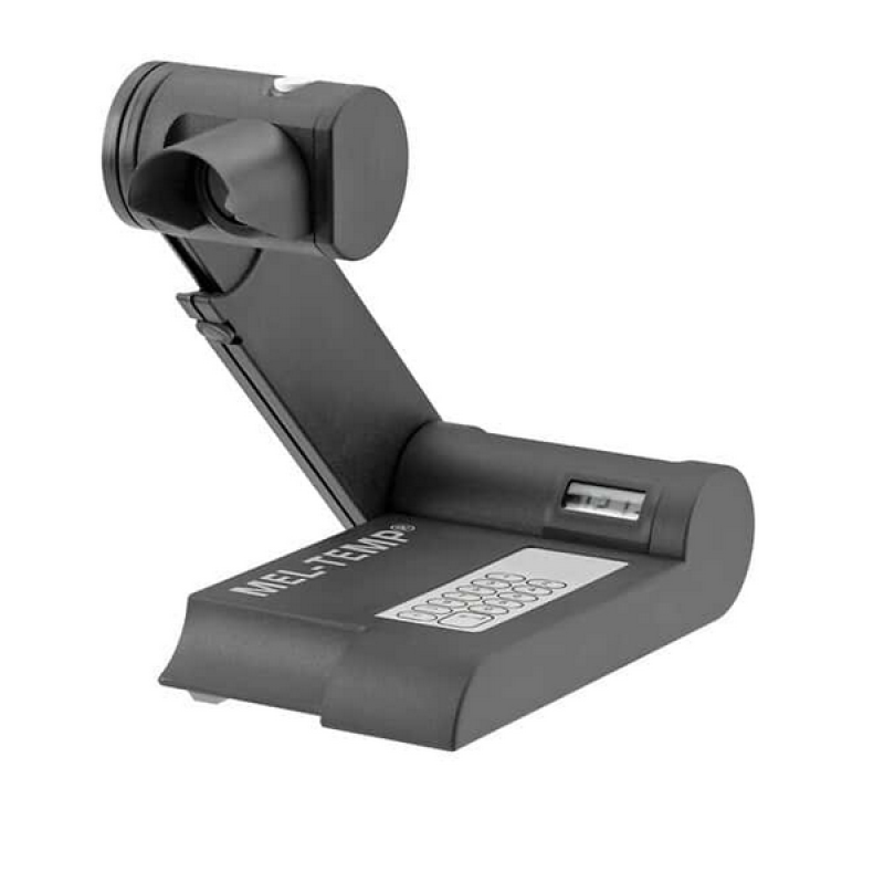 Mel-Temp® Dijital Erime Noktası Aparatı, numunelerin erime noktalarını ±1°C sıcaklık çözünürlüğü ile uygun fiyata ölçmek için hızlı ve kolay bir yol sunar. Yüksekliği ayarlanabilen bir uzatma kolu ve her kullanıcıya uyacak şekilde döndürülebilen bir görüntüleme kafası ile herkes için rahat görüntüleme sağlamak üzere ergonomik olarak tasarlanmış olması, birden fazla kullanıcı için idealdir. Görsel bir yardım olarak, görüntüleme kafası, 8X büyütme sunan bir görüntüleme büyüteci içerir.