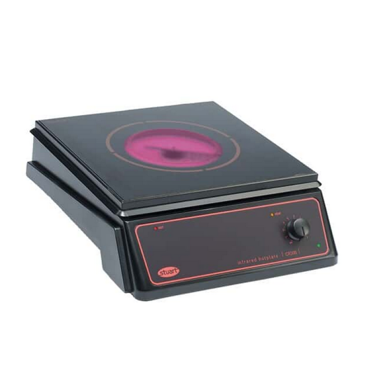 Bu sıcak plaka, bir litre suyu geleneksel, 1200 watt'lık seramik ocaktan% 30 daha hızlı kaynatabilen verimli, 900 watt'lık bir kızılötesi ısıtıcıya sahiptir. Kimyasallara dayanıklı, seramik üst plaka, kazara yanıkları önlemeye yardımcı olmak için kenarların etrafında serin kalan 5,5 "(14 cm) çapında bir ısıtma alanına sahiptir. "Sıcak" uyarı ışığı, plaka sıcaklığı 50°C'yi aştığında yanıp söner ve sıcak plaka kapatıldığında bile çalışır.