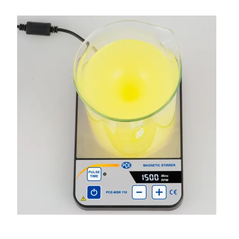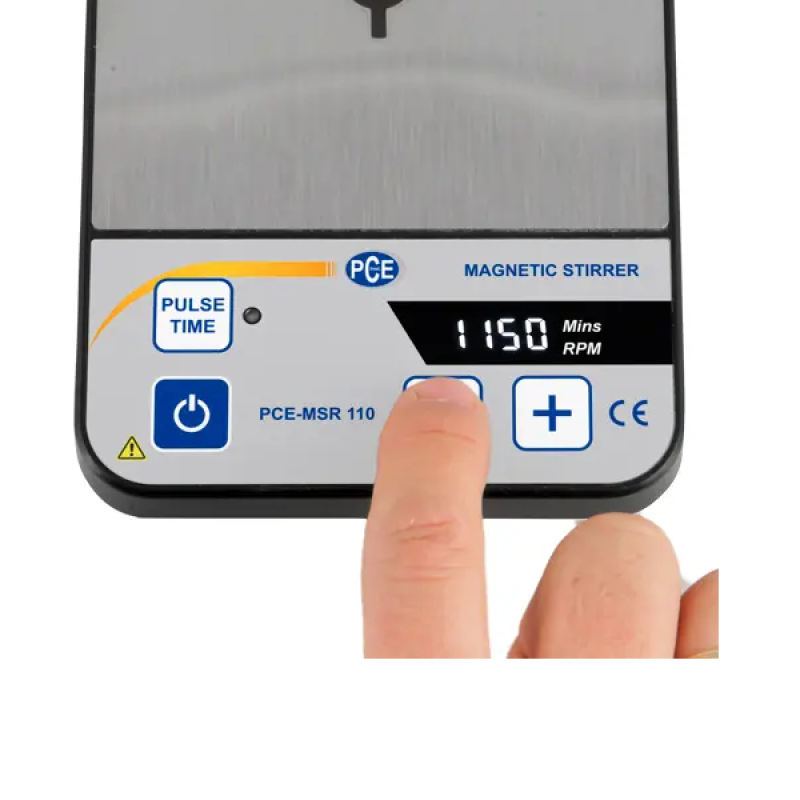 Manyetik karıştırıcının karıştırma hızı 15 … 1500 rpm arasında ayarlanabilir. PCE-MSR 100, sıçramayı önlemek için ayarlanan karıştırma hızına kadar yavaş bir şekilde çalışır. Manyetik karıştırıcı, aşınmaya dayanıklıdır ve bakım gerektirmez. Entegre zamanlayıcı, karıştırma işleminin 1 … 99 dakika arasında ayarlanmasını sağlar. Ters karıştırma fonksiyonu ile 30 saniyelik aralıklarla devir yönü değiştirilir.