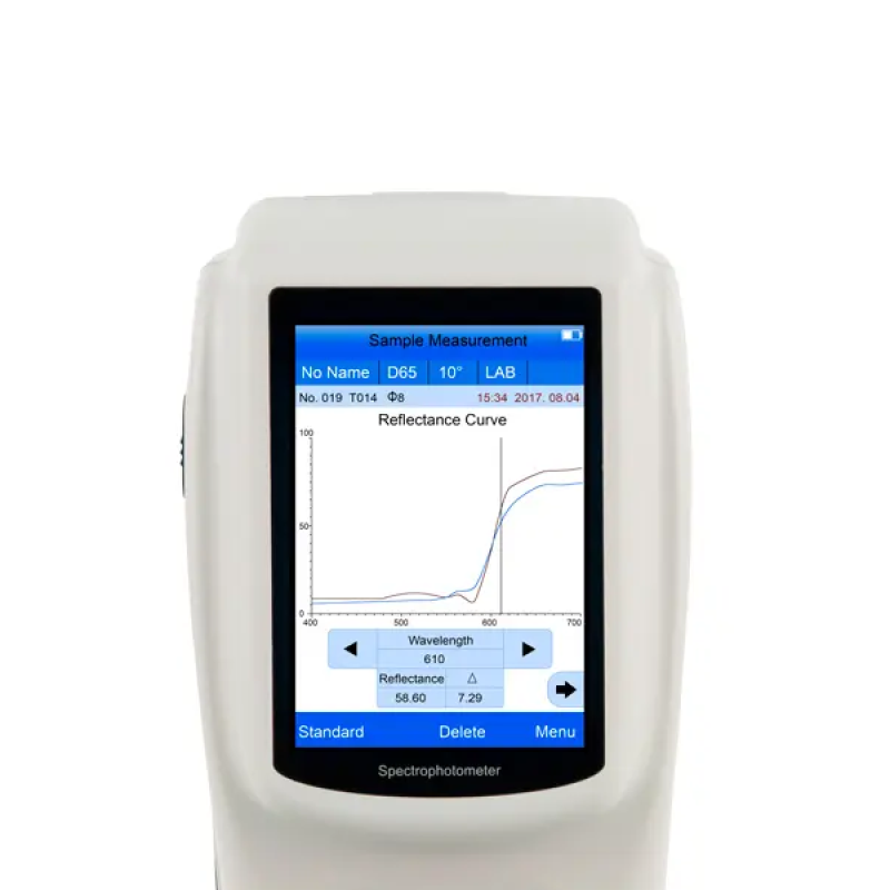 PCE-CSM 10 Kalorimetre, 3.5 inç dokunmatik ekranlı yüksek hassasiyet sunan bir cihazdır ve kalite kontrol için geliştirilmiştir. Cihaz kullanılırken farklı renk alanları (CIE L*A*B, XYZ, Yxy, LCh, CIE LUV, HunterLAB). Ölçümden sonra, okuma referans değeri olarak kullanılabilirken diğer okumalar numune olarak kaydedilebilir ve daha sonra kolaylıkla referans değeri ile karşılaştırılabilir.