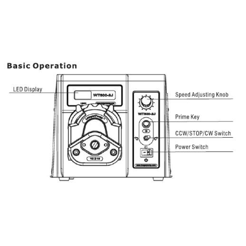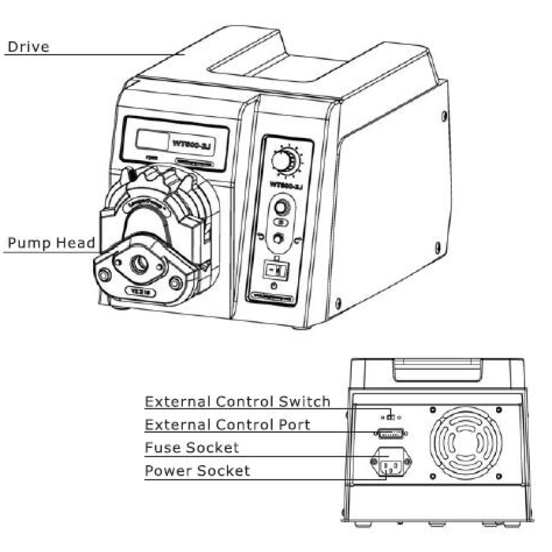 WT600-2J, çeşitli pompa kafaları ve farklı hacimlerdeki silikon hortumlar ile kullanılabilen çok kanallı bir peristaltik pompadır.
