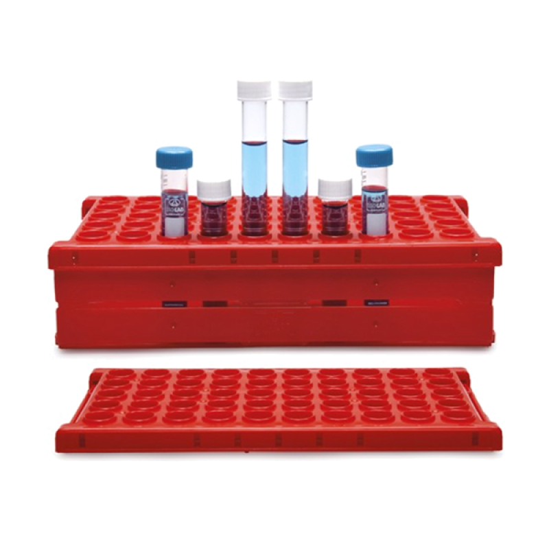 ISOLAB Tüp Standı P.P Katlanabilir 18 mm Tüpler İçin Kırmızı 5x10 Delikli