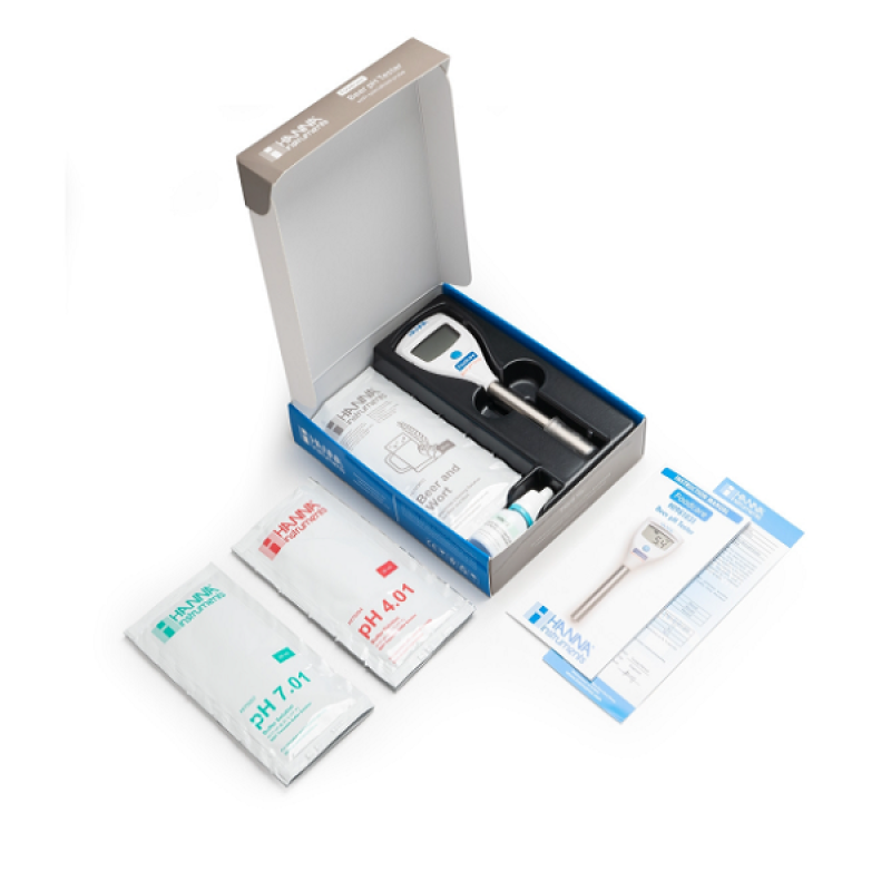 • Sipariş Bilgileri Her HI981031 Bira pH Test Cihazı aşağıdakilerle birlikte verilir: pH 4.01 tampon solüsyonu sıvı poşeti (2 adet), pH 7.01 tampon solüsyonu sıvı poşeti (2 adet), Demleme tortuları için temizleme solüsyonu (2 adet), Elektrot saklama solüsyonu, 13 mL damlalık, Kullanım kılavuzu, Kalite Belgesi