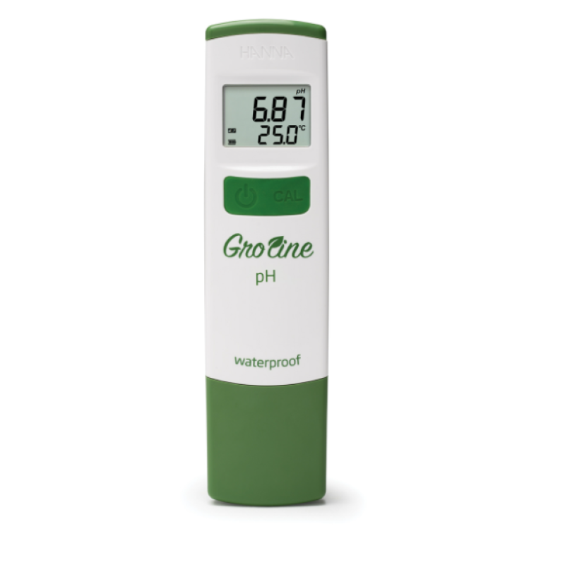 GroLine HI98118 pH/sıcaklık test cihazı, hidroponik bir besin çözeltisinin pH'ını ölçmek için en yeni cep ölçerimizdir. Bu modern görünümlü ölçüm cihazı, yalnızca 0,7" kalınlığında ve son derece ergonomiktir, elinize rahatça oturur. HI98118, kalibrasyon, kararlılık ve düşük pil göstergeleri ile birlikte pH ve sıcaklığı gösteren, okunması kolay çok büyük bir LCD ekrana sahiptir. Tüm işlemler basitleştirilmiştir. iki tuşa biri sayacı açmak/kapatmak için, diğeri ise otomatik bir veya iki nokta kalibrasyonu içindir.