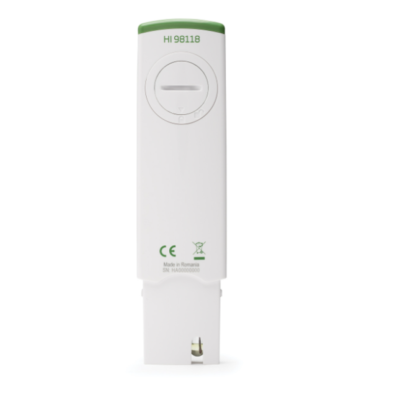 HI98118, basitliği korurken gelişmiş bir ölçüm cihazıdır. Sayacın ön tarafında iki düğme bulunur. Biri sayacı açıp kapatmak için, diğeri ise kalibrasyon moduna girmek için kullanılır. Pil bölmesinde, kullanıcının sayacı kendi tercihlerine göre özelleştirmesini sağlayan üçüncü bir düğme vardır. Özelleştirme, oC veya oF cinsinden sıcaklık okumasını, 8 dakika, 60 dakika veya devre dışı seçilebilen otomatik kapanmayı ve son olarak Hanna'nın Quick Cal pH/EC standardını veya pH 4.01, 7.01 ve 10.01 geleneksel tampon değerlerini kullanma seçimini içerir.