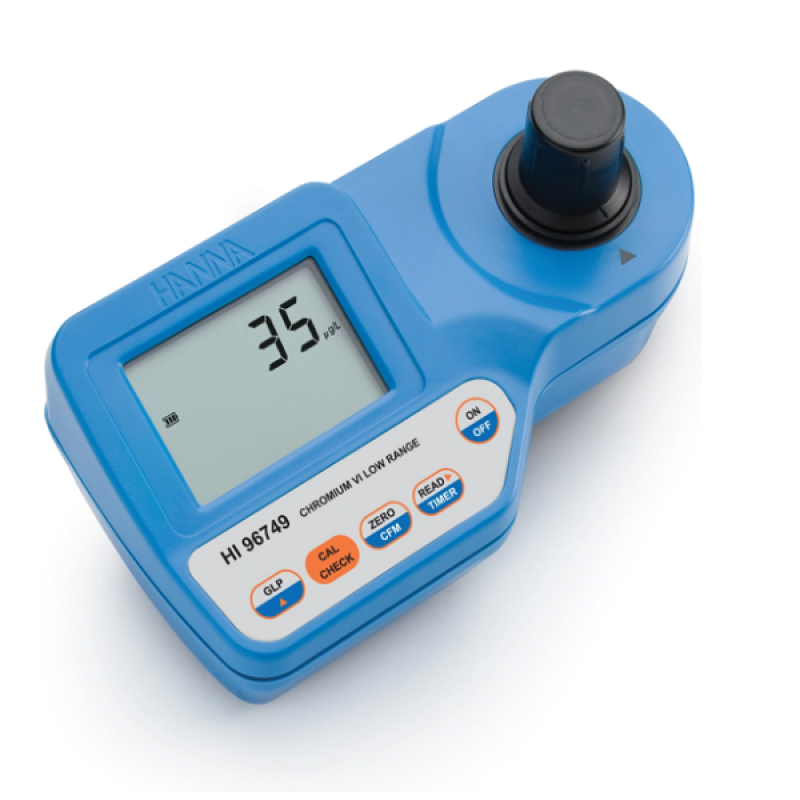 HI96749 taşınabilir fotometre, Hexavalent krom (Cr +6 ) ölçümü içindir . Hanna'nın taşınabilir fotometreleri gelişmiş bir optik sisteme sahiptir; özel bir tungsten lamba, dar bantlı bir girişim filtresi ve silikon fotodedektörün kombinasyonu, her seferinde doğru fotometrik okumalar sağlar. Hanna'ya özel CAL Check™ özelliği, hem sayaç doğrulamasını hem de kalibrasyonu doğrulamak için hazır, NIST izlenebilir standartları kullanır. Özel küvet kilitleme sistemi, tutarlı bir yol uzunluğunu korumak için küvetin her seferinde ölçüm hücresine aynı konumda yerleştirilmesini sağlar.