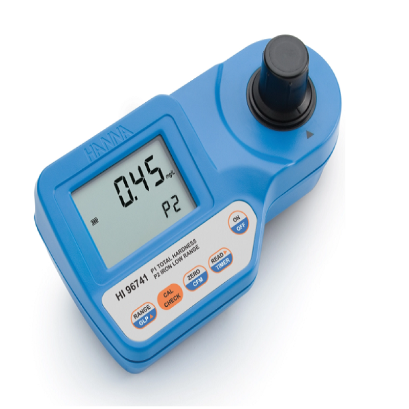 HI96741 Toplam Sertlik ve Düşük Menzilli Demir Taşınabilir Fotometre, ergonomik, taşınabilir bir tasarımda doğruluk ve kullanım kolaylığını birleştirir. Bir kullanıcı, hazır reaktifleri kullanarak bu iki parametreyi doğru bir şekilde belirleyebilir. HI96741, ölçüm cihazının performans doğrulaması ve kalibrasyonu için kullanılan özel CAL Check™ işlevi dahil olmak üzere birçok gelişmiş özellik sunar.