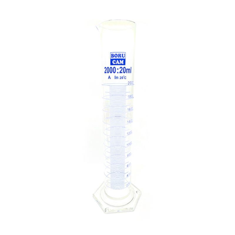 Etiketler: Borucam, Cam Mezür, 2000 ml, 2 Litre, Borosilikat 3.3, Altıgen Taban, Uzun Form, Dereceli Silindir, Laboratuvar Sarf Malzemesi, Hassas Ölçüm