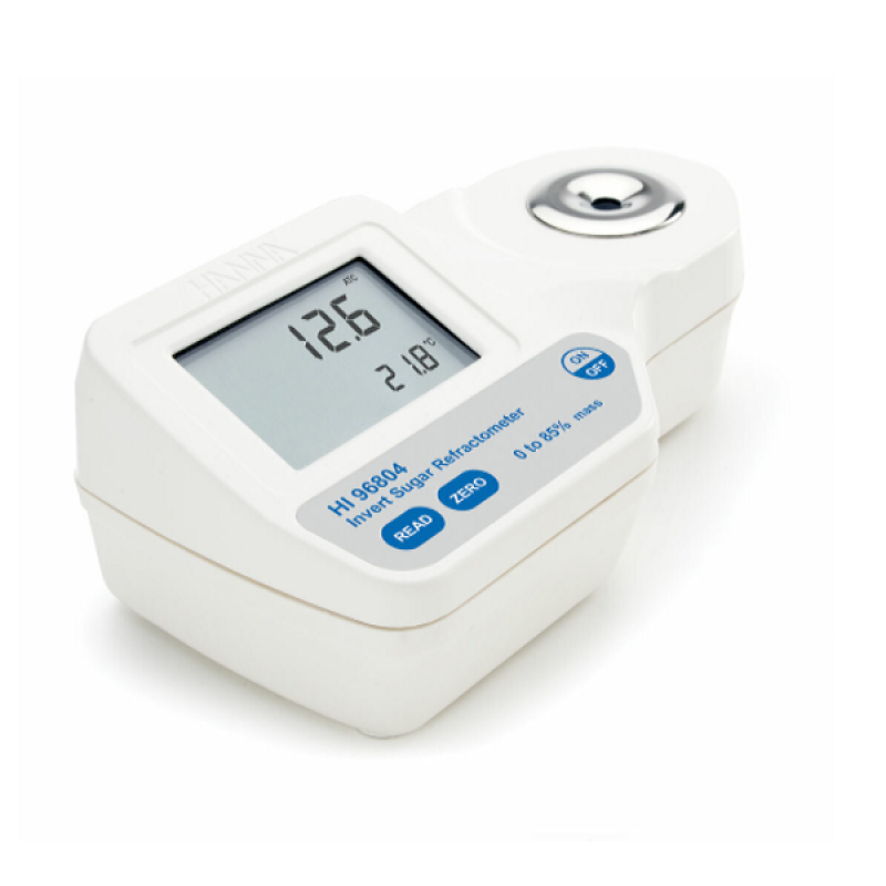 HI96804 Dijital İnvert Şeker Refraktometresi, bir gıda numunesinin kırılma indeksini ağırlıkça % invert şekere dönüştürür. Bu dönüştürme, ICUMSA Yöntemler Kitabında (Uluslararası Tekdüzen Şeker Analizi Yöntemleri Komisyonu) bulunan ve ağırlıkça yüzde invert şeker çözeltisi için sıcaklıkla kırılma indisindeki değişiklikleri belgeleyen tablolara dayanmaktadır. HI96804, baldan, reçelden veya sakaroz bileşiğinin bölünmesinden üretilen invert şekerin analizi için idealdir. HI96804, tarlada veya laboratuvarda gıda numunelerindeki şekeri ölçmek için kullanımı kolay bir araçtır.