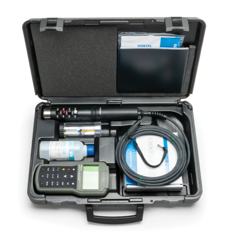 - Sipariş Bilgileri HI98194, HI7698194 probu, HI7698194-1 pH/ORP sensörü, HI7698194-3 EC sensörü, HI7698194-2 DO sensörü, HI 76981942 Prob bakım kiti (HI 7042S DO elektrolit solüsyonu, DO membran kapakları (5), sensörler (5), O-ringleri yağlamak için gresli şırınga), HI9298194 Hanna PC yazılımı, HI920015 mikro USB kablosu, 1.5V AA piller (4), kullanım kılavuzu, hızlı başlangıç kılavuzu, kalite sertifikası ve özel tasarımlı sağlam taşıma çantası termoform uç.