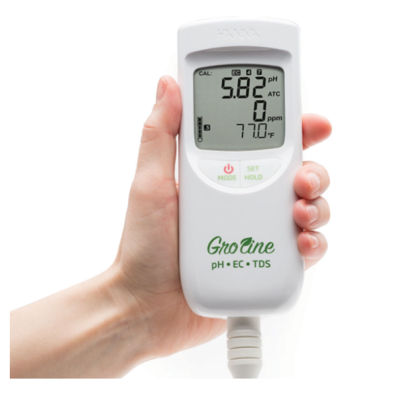 Besin testine basitlik getirmek için tasarlanan HI9814 Portable GroLine Meter, özellikle Hydroponic yetiştiriciler için tasarlanmıştır. Özel elektrot, 3 sensörü polipropilen gövdeye, entegre sıcaklık sensörüne ve kumaş bağlantı noktasına sahip tek sağlam bir probda birleştirir.
