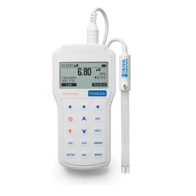 Süt işleme sırasında pH testini basitleştirmek için tasarlanan HI99162 Süt pH Ölçer, süt işleme tesi..