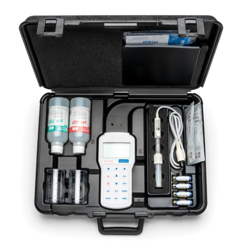 - Sipariş Bilgileri HI98162, FC1013 PVDF gövde pH elektrodu, HI7004M pH 4.01 tampon solüsyonu (230 mL), HI7007M pH 7.01 tampon solüsyonu (230 mL), süt tortuları için HI700640 elektrot temizleme solüsyonu poşet (2), 100 mL plastik beher (2) ile birlikte verilir, 1,5V AA piller (4), HI92000 PC yazılımı, HI920015 mikro USB kablosu, hızlı başlangıç kılavuzlu kullanım kılavuzu, cihaz kalite sertifikası ve HI720161 sert taşıma çantası.