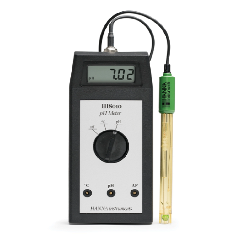 HI8010, kullanım kolaylığı düşünülerek özel olarak tasarlanmış sağlam, elde taşınabilir bir pH metredir. Bu uygun fiyatlı sayaç, eğitim ve saha uygulamaları için idealdir.