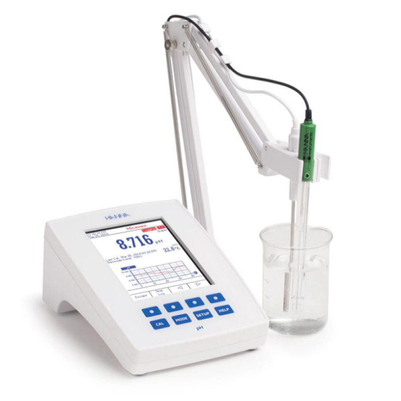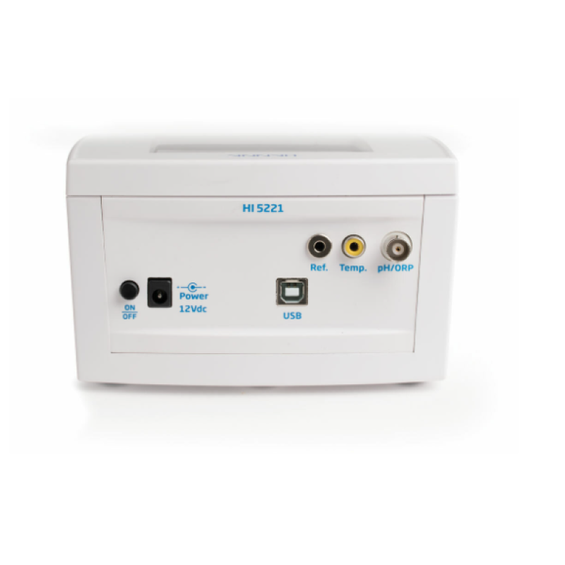HI5221, büyük bir renkli LCD, kapasitif dokunmatik tuşlar ve bilgisayar bağlantısı için USB bağlantı noktası ile tamamen özelleştirilebilir, gelişmiş araştırma sınıfı masaüstü pH/mV metredir.
