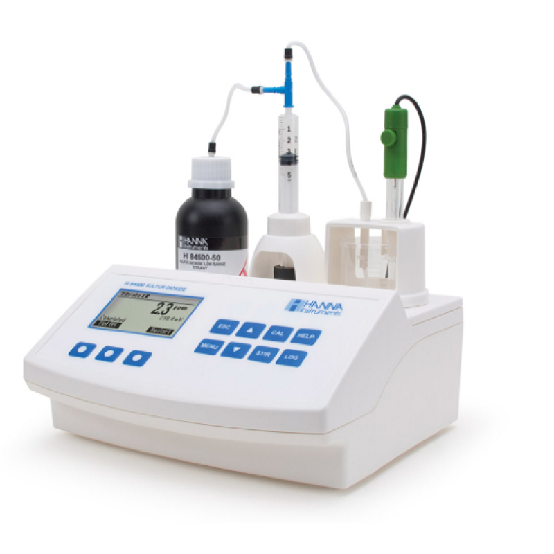 HI84500, şarap, meyve suyu ve şıradaki kükürt dioksiti (SO 2 ) test etmek için tasarlanmış basit, hızlı ve doğru bir otomatik mini titratör ve ORP metredir .