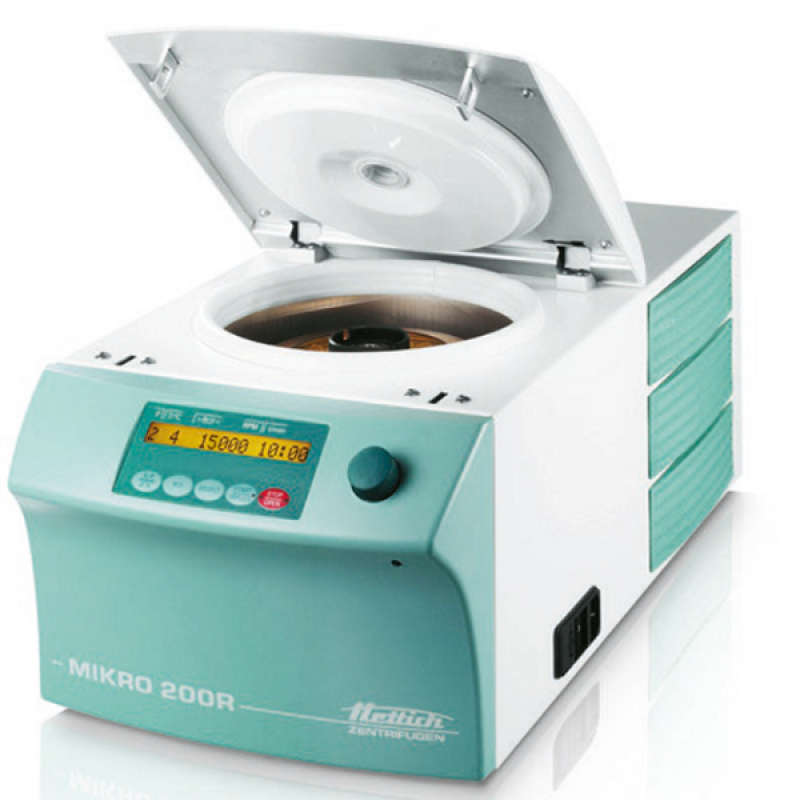 MIKRO 200, sınıflarındaki en yüksek hızlı mikrolitre santrifüjler arasındadır. Rotorlar, mikrolitre ve PCR tüplerini döndürmek için tasarlanmıştır. MIKRO 200, 30 adede kadar tüp ile maksimum 21.382 RCF'ye ulaşarak, 54 dB(A) gibi düşük gürültü seviyelerinde numunelerin hızlı işlenmesini ve optimum ayırmayı sağlar.