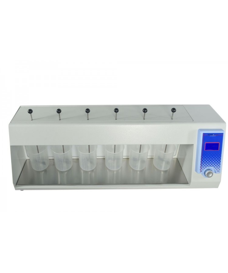 Possibility to work with different samples at the same time with 6 mixing positions. Adjustment and monitoring of speed and timer values with its digital display. Digitally selectable mixing speed from 30 to 300 rpm. With its microprocessor-controlled timer, the device can be operated without waiting and it will stop automatically at the end of the time. It offers comparable results with the same speed and time setting for all positions. User-friendly operation with reliable and repeatable results. Precise and accurate speed with electronically controlled DC gear motor. Graphic liquid crystal display for speed and time. Illuminated back surface to facilitate sample viewing. Height-adjustable stir bars without tools, providing easy use to the user. Design providing strong resistance to chemical and mechanical corrosion.