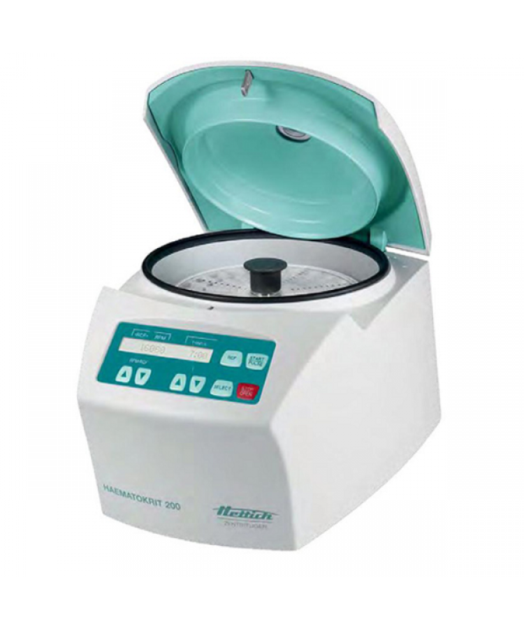 HAEMATOKRIT 200, hematokrit sayısını belirlemek için hızlı ve verimli bir santrifüjdür. 13.000 RPM'de çalışır ve maksimum 16.060 RCF'ye kadar 24 kapiler boruyu barındırır. Sonuçlar, rotor kapağındaki entegre Hematokrit okuyucu ile net bir şekilde görüntülenebilir.