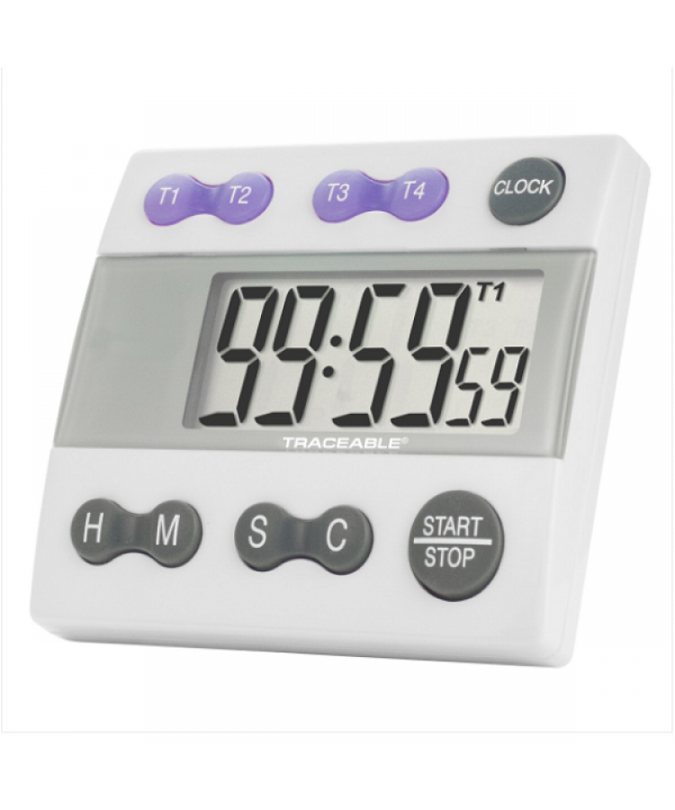 Mikrobilgisayar çipi, herhangi bir geri sayım veya geri sayım (kronometre) kombinasyonunda aynı anda 4 ayrı kanalın ayarlanmasına izin verir. Herhangi bir geri sayım süresini %0,01 doğrulukla 99 saat, 59 dakika, 59 saniyeden 1 saniyeye ayarlayın. Sıfıra ulaşıldığında, zamanlayıcı alarm vermesinden bu yana geçen süreyi göstermek için saymaya başlar. Ek özellikler arasında kronometre, zaman aşımı ve günün saati bulunur. Parmak boyutundaki tuşlar, zamanları ayarlamayı ve kanalları değiştirmeyi kolaylaştırır.
