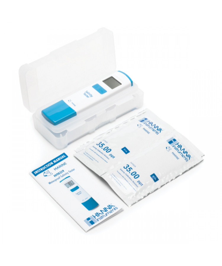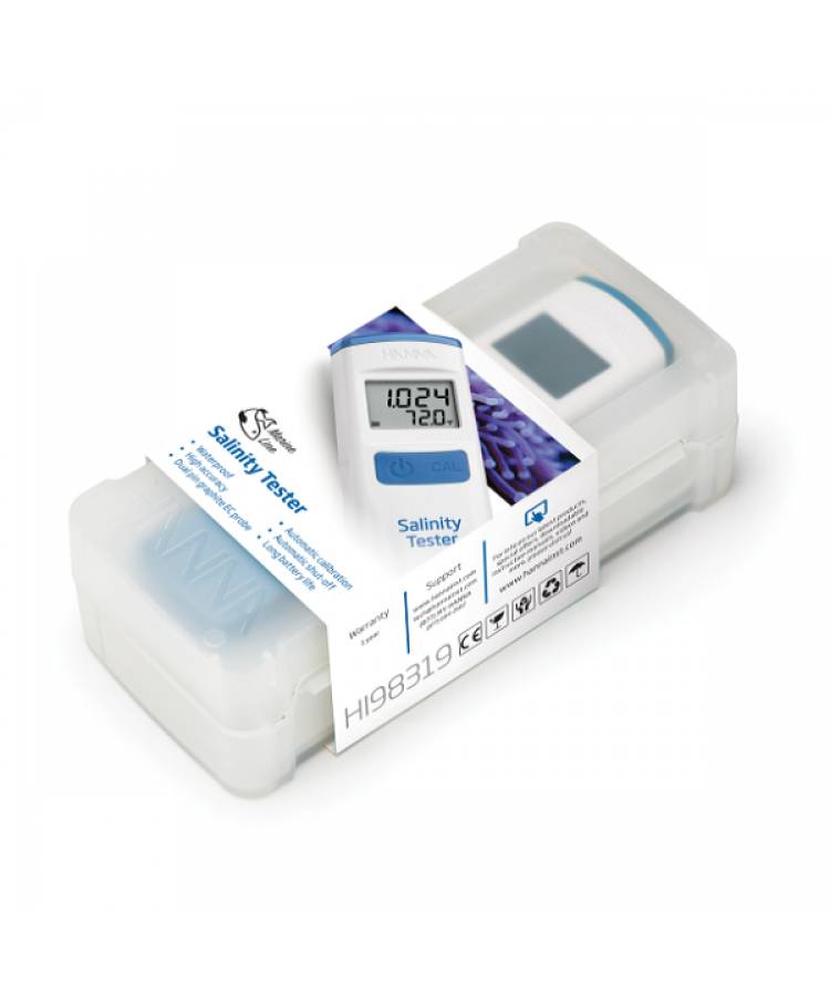Herhangi bir işlem sırasında tuzluluk testine basitlik getirmek için tasarlanan HI98319 Deniz Tuzluluğu Test Cihazı, doğal ve yapay deniz suyunun tuzluluğunu belirlemek için iletkenliği (EC) ölçer. Saniyeler içinde tuzluluk ve sıcaklık LCD'de dijital olarak görüntülenir.