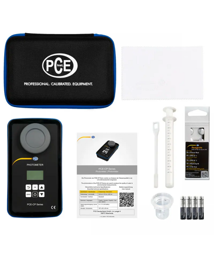 PCE-CP 22 pH Metre, sıvıların analizi için kullanılan mobil bir cihazdır. Bu da alkalinite, klor, siyanürik asit ya da pH değeri gibi çeşitli ölçümlerin gerçekleştirilebilmesi anlamına gelir. Ölçüm yapmak için, 10 ml’lik bir su numunesi küvete yerleştirilmelidir. Cihazın LED ışığı, 503 nm, 570 nm ve 620 nm dalga boyu aralığında bir test ışığı üretir. Fotodiyot, numunenin ışık geçirgenliğine bağlı olarak ölçülecek değeri tanır.