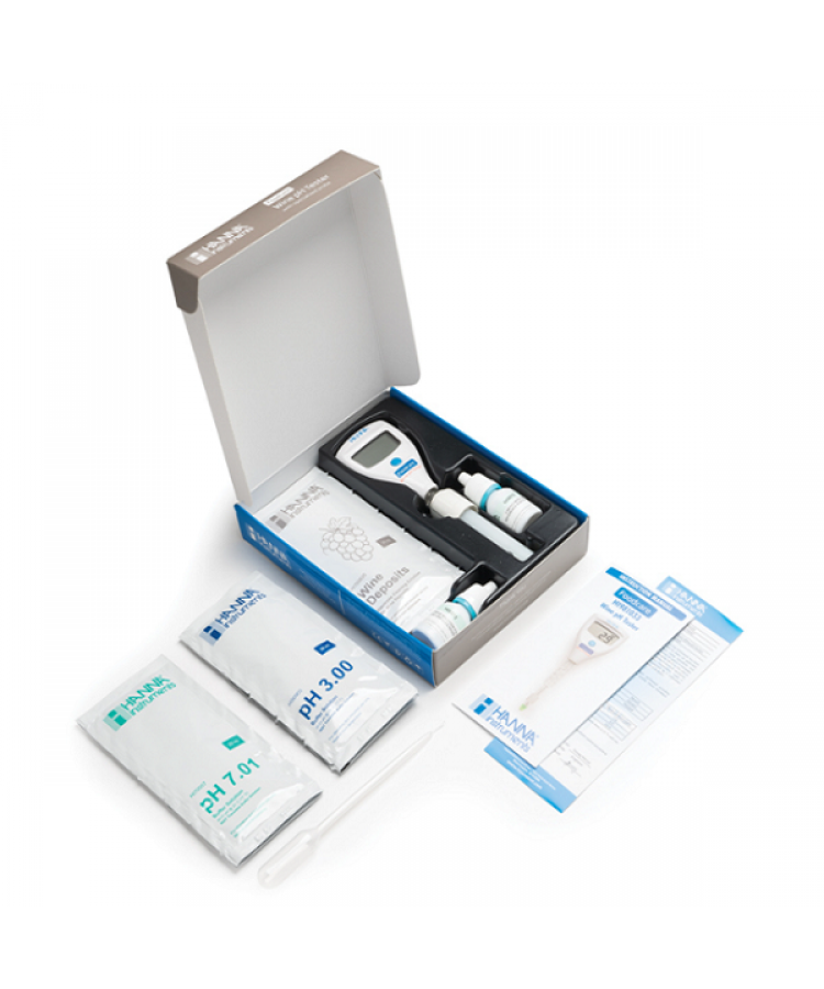 • Sipariş Bilgileri Her HI981033 Şarap pH Test Cihazı aşağıdakilerle birlikte verilir: pH 3.00 tampon solüsyonu sıvı poşeti (2 adet), pH 7.01 tampon solüsyonu sıvı poşeti (2 adet), Şarap tortuları için temizleme solüsyonu, Şarap lekeleri için temizleme solüsyonu, Elektrot saklama solüsyonu, 13 mL damlalık, Elektrolit doldurma solüsyonu, Pipet, Kullanım kılavuzu, Kalite sertifikası