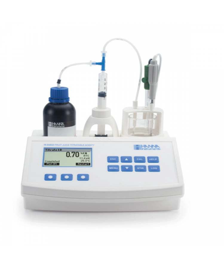 HI84532U-01, meyve suyunda pH ve titre edilebilir asitliğin belirlenmesi için tasarlanmış basit, hızlı ve doğru bir otomatik mini titratördür.