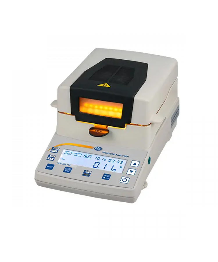 PCE-MA 100 Nem Tayin Cihazı, çeşitli malzemeleri tartmak ve nem içeriklerini belirlemek için kullanılabilir. Analitik tartıda halojen lambalarla 199 °C’ye kadar ısıtılabilen bir ısıtma haznesi bulunur. Analitik tartı, bu haznede tartılacak malzemeyi kurutur ve ardından ağırlık farkından nem içeriğini hesaplar. Analitik tartı, 0.001 g’lık okunabilirliği sayesinde ağırlıktaki en küçük farkları bile belirleyebilir.