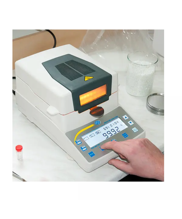 Analitik tartı ile elde edilen ölçüm sonuçları analitik tartının büyük LCD ekranında görüntülenir. Analitik tartının hafızasında 15 farklı kurutma programı kaydedilebilir. Bu da analitik tartıyı granüllerin, peletlerin ya da hayvan yemlerinin kalite kontrolü için ideal hale getirir. Analitik tartı, RS-232 arayüzü aracılığıyla bilgisayara bağlanabilir. Analitik tartının teslimat içeriğinde yer alan 100 g ağırlık ve entegre kalibrasyon fonksiyonu ile analitik tartı istenildiğinde yeniden ayarlanabilir.