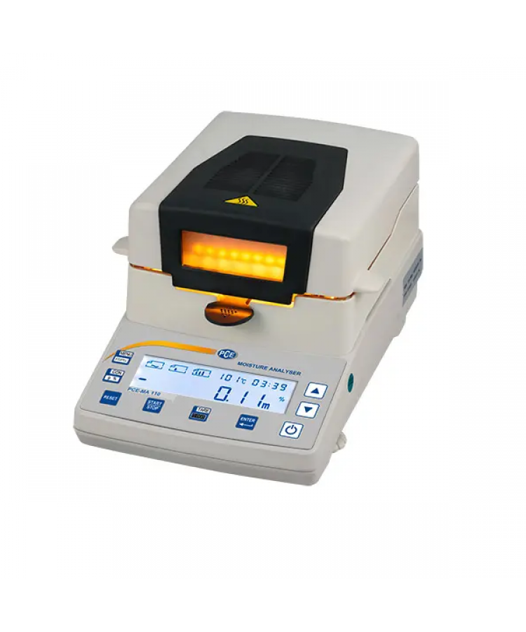 PCE-MA 200 Nem Ölçer, çeşitli malzemeleri tartmak ve nem içeriklerini belirlemek için kullanılabilir. Nem ölçerde halojen lambalarla 199 °C’ye kadar ısıtılabilen bir ısıtma haznesi bulunur. Nem ölçer, bu haznede tartılacak malzemeyi kurutur ve ardından ağırlık farkından nem içeriğini hesaplar. Nem ölçer, 0.001 g’lık okunabilirliği sayesinde ağırlıktaki en küçük farkları bile belirleyebilir.