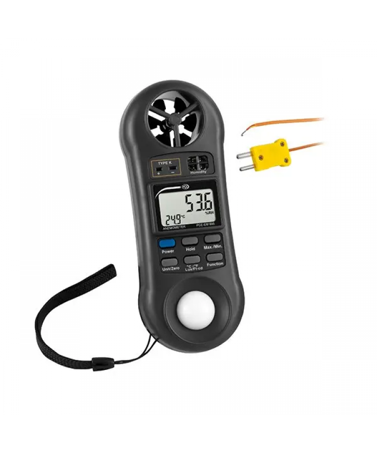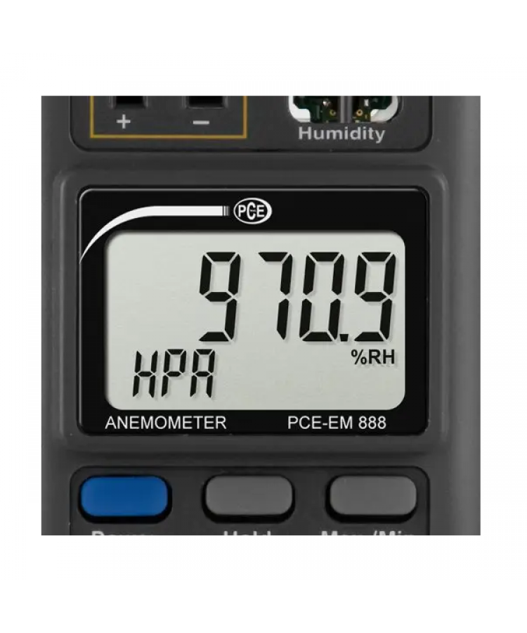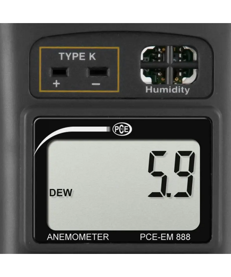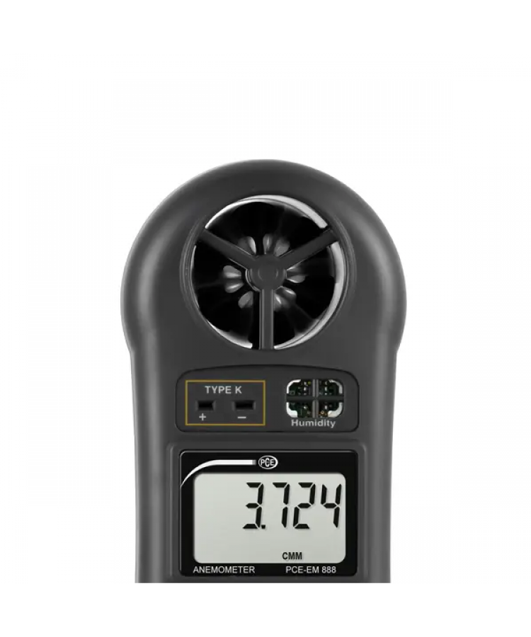 Yüksek hassasiyete sahip K tipi termokupl, hızlı sıcaklık ölçümleri; pervane de hassas rüzgar hızı ölçümleri sağlar. Rüzgar hızı ölçümünde higrometre eş zamanlı olarak hava akışının sıcaklığını da ölçer. Bunun yanında, cihazın bağıl nem sensörü de bulunur. Monolitik silikon bazlı basınç sensörü, barometrik ya da atmosfer basınç ölçümü gerçekleştirme imkanı sunar. Işık sensörü, çok kullanışlı PCE-EM 888’in ölçüm fonksiyonunu tamamlar.