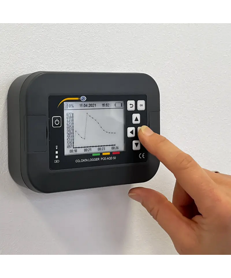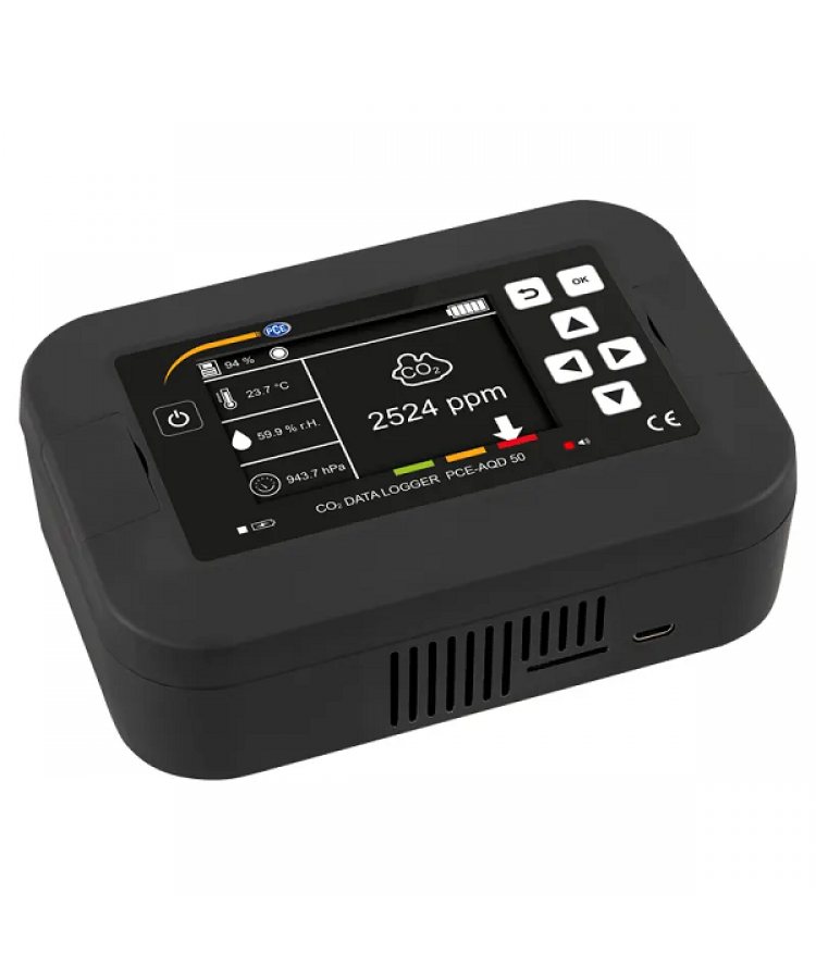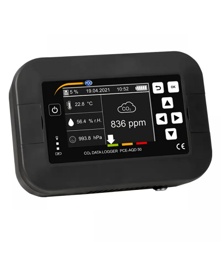 PCE-AQD 50 Higrometre, ofislerde, sınıflarda ya da amfilerdeki iklim koşullarının uzun süreli izlenmesi için özel olarak tasarlanmıştır. Higrometrenin çeşitli sensörü bulunur. Karbondioksit sensörün 40.000 ppm’ye kadar, sıcaklık sensörünün 0 … 50°C, ortam nemi sensörünün 0 … 100% n.o ve barometrenin 300 … 2000 hPa ölçüm aralığı bulunur. Bu nedenle, higrometre, pek çok uygulamada kullanılabilir. Ölçüm değerleri doğrudan e-paper ekranda görüntülenir. Ortamdaki havada bulunan karbondioksit içeriğinin iyi / orta / kötü değerlendirmesi de ekranda görüntülenir.