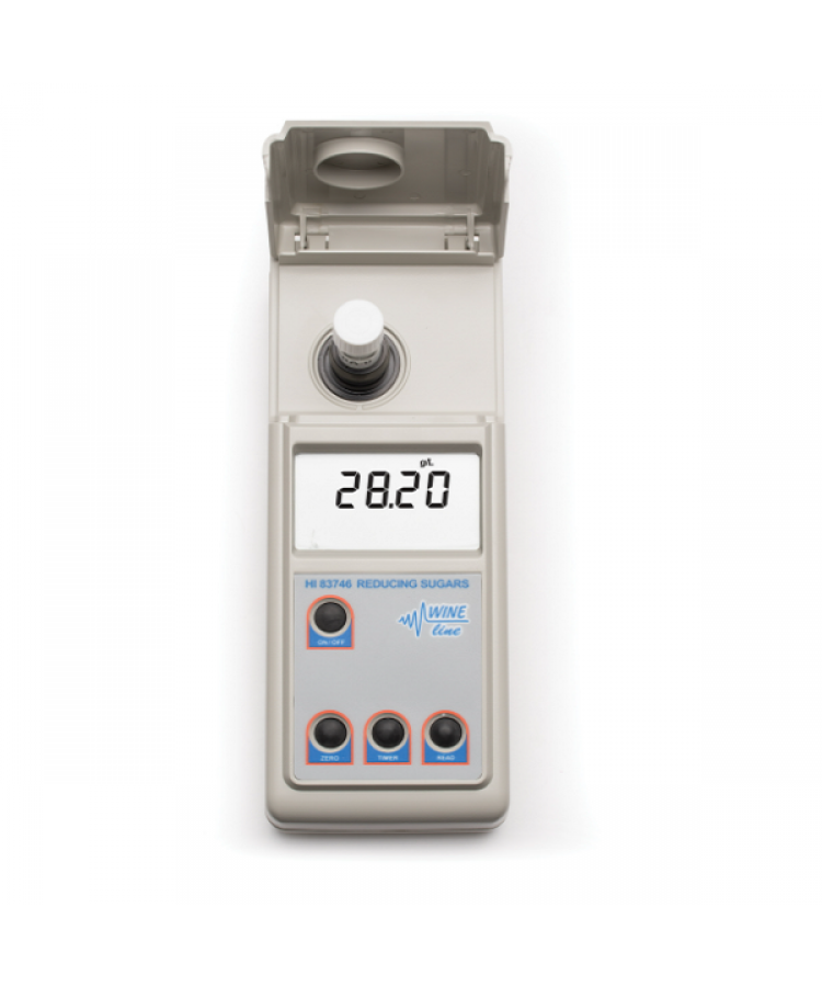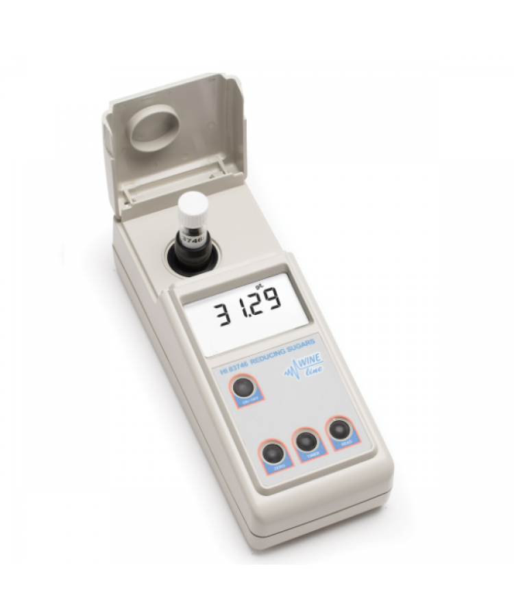 HI83746 fotometre, şaraptaki indirgen şekerlerin belirlenmesi içindir. Hanna'nın fotometreleri gelişmiş bir optik sisteme sahiptir; özel bir tungsten lamba, dar bantlı bir girişim filtresi ve silikon fotodedektörün kombinasyonu, her seferinde doğru fotometrik okumalar sağlar. Özel küvet kilitleme sistemi, tutarlı bir yol uzunluğunu korumak için küvetin her seferinde ölçüm hücresine aynı konumda yerleştirilmesini sağlar.