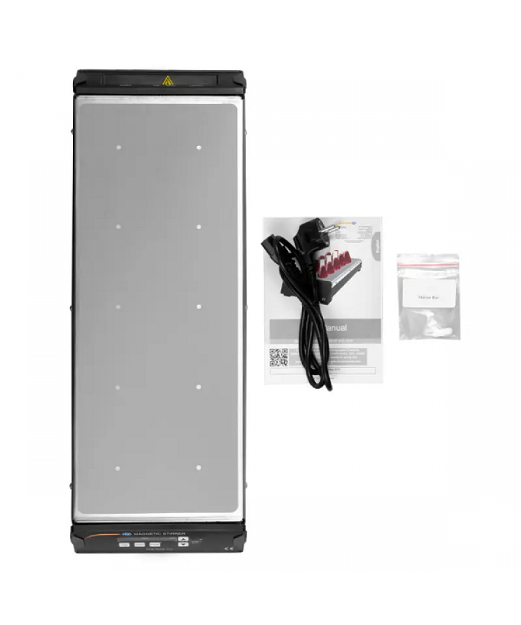 Manyetik karıştırıcının güvenli bir şekilde durmasını sağlamak için manyetik karıştırıcının gövdesinde 4 tane kauçuk ayak bulunur. Manyetik karıştırıcının plakası paslanmaz çelikten yapılmıştır ve kaymayı engellemek için silikon kaplama ile kaplanmıştır. Çapı yaklaşık 80 mm olan kaplar her bir karıştırma noktası için ayarlanabilir. Manyetik karıştırıcının her bir karıştırma noktası için karıştırma miktarı 400 ml’dir.