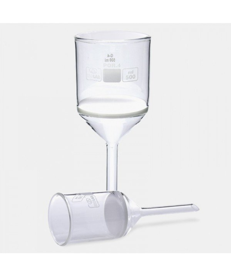 Asitlere dayanıklı sinterlenmiş cam disk ile donatılmış olarak borosilikat 3.3 camdan üretilir. Herhangi bir filtre kağıdına gerek duyulmaksızın hızlı süzme işlemini garanti eder.