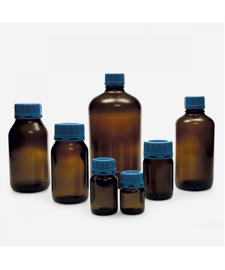 Nötr camdan kalın duvarlı ve amber renkli olarak üretilir. Amber şişeler UV ışınlarının geçmesini önleyerek ışığa duyarlı maddelerin korunmalarını sağlar. GL40 boyunlu sıvı şişe kapakları içinde PTFE koruyucu iç conta bulunur. Emniyet halkalı ve kendinden kilitli kapak şişe içindeki maddenin tam güvenliğini sağlar.