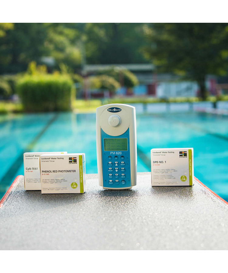 The requirements of demanding pool operators are met at all times with the photometers PM 600 and PM 620. The devices are equipped with up to 34 test methods and a memory for up to 1000 data sets. Intuitive operation, Back-lit display, User guide in German, English, French, Spanish, Italien, Portugese, Polish & Indonesian, Stores up to 1000 results…