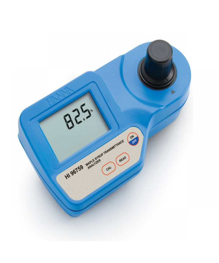 HI96759, 560 nm dalga boyunu izole etmek için dar bantlı bir girişim filtresine sahip bir tungsten lambasına sahip, elde taşınabilir bir akçaağaç şurubu geçirgenlik analizörüdür. Bu fotometre, 10 mm'lik bir numune küveti kullanır ve bir gliserol standardı ile %100 geçirgenliğe kalibre edilmiştir. Tüm numuneler gliserol standardı ile karşılaştırılır ve okumalar % geçirgenlik olarak görüntülenir. Gelişmiş optik sistemi ile son derece hassas ölçüm cihazı, doğru ve tekrarlanabilir okumalar sağlamak için öznelliği ortadan kaldırır.