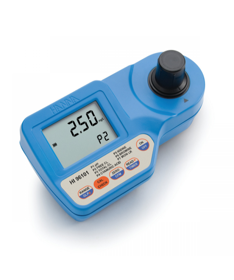 HI96101 taşınabilir fotometre brom, serbest ve toplam klor, siyanürik asit, iyot, demir ve pH ölçümü içindir. Hanna'nın taşınabilir fotometreleri gelişmiş bir optik sisteme sahiptir; özel bir tungsten lamba, dar bantlı bir girişim filtresi ve silikon fotodedektörün kombinasyonu, her seferinde doğru fotometrik okumalar sağlar. Hanna'ya özel CAL Check™ özelliği, hem sayaç doğrulamasını hem de kalibrasyonu doğrulamak için hazır, NIST izlenebilir standartları kullanır. Özel küvet kilitleme sistemi, tutarlı bir yol uzunluğunu korumak için küvetin her seferinde ölçüm hücresine aynı konumda yerleştirilmesini sağlar.