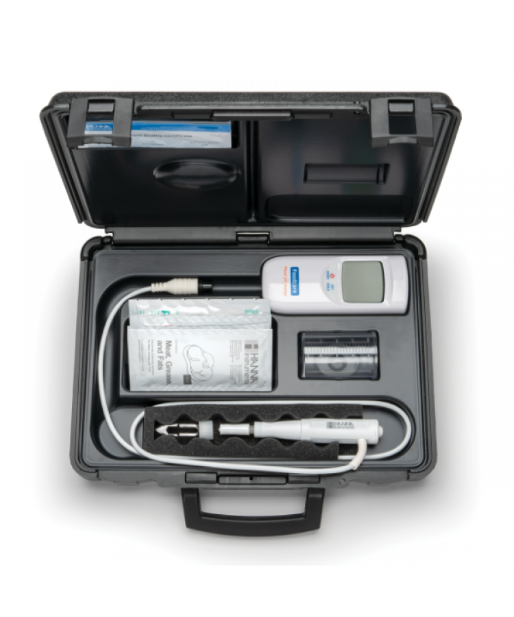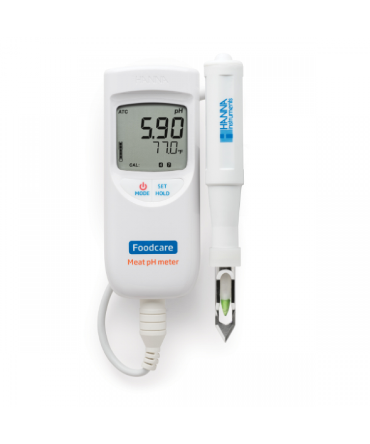 Et ürünlerinin pH testini basitleştirmek için tasarlanan HI99163 Et pH Ölçer, et işleme tesislerinin zorlu ortamına dayanacak şekilde tasarlanmıştır. Özel FC2323 probu, bir PVDF gövdeye, paslanmaz çelik bıçaklı konik uca ve onu et işlemede pH ölçümü için ideal kılan açık bağlantıya sahiptir.