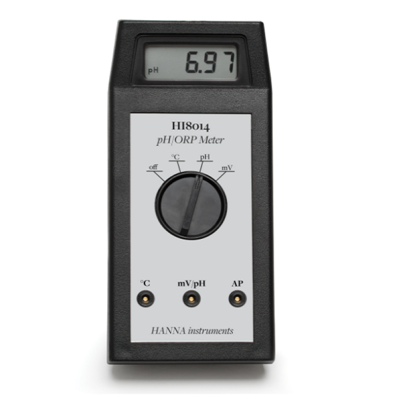 HI8014, manuel sıcaklık kompanzasyonu ile pH ölçümleri gerçekleştirir. HI8014 ayrıca mV aralığını ve isteğe bağlı ORP elektrotunu (HI3131B) kullanarak ORP ölçümleri gerçekleştirir. Ön paneldeki trimmerler ile iki noktalı kalibrasyon yapılabilir. Sıcaklık, düzeltici kullanılarak manuel olarak dengelenir. Bu sağlam, manuel pH/ORP ölçer, öğrencilere pH ve ORP ölçümünün temellerini öğretmek için mükemmeldir.